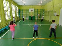 Во время спортивного часа состоялась товарищеская встреча по пионерболу. Играли две сборные команды из учеников 2-4 классов.